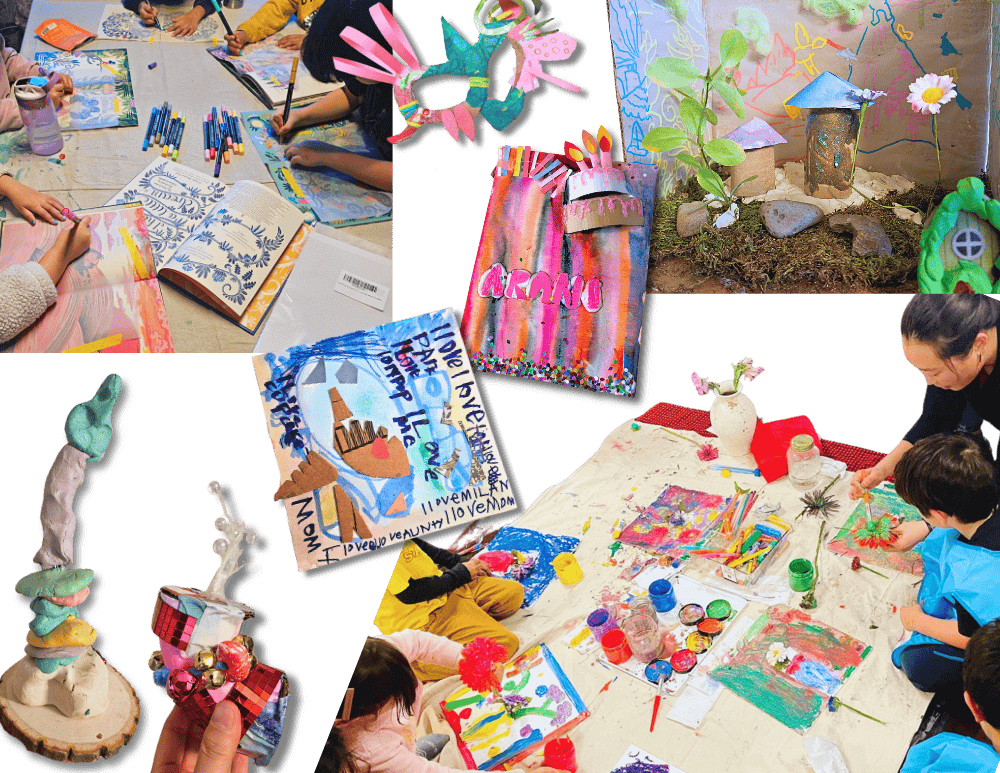 Each class invites children to think, imagine, and experiment through a guided creative process. Rather than following step-by-step instructions, students are encouraged to make choices and explore materials in their own way.